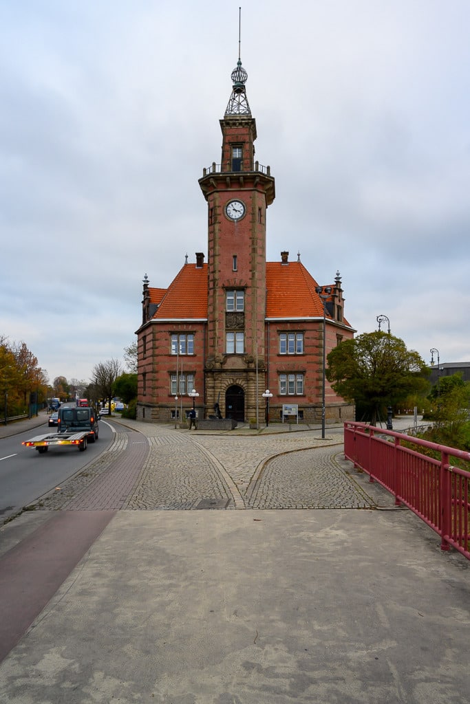 Das Gebäude mit dem 38 m hohen und weithin sichtbaren Turm wurde 1898 nach Plänen des Architekten Friedrich Kullrich im damals neu gegründeten Hafen errichtet und bis 1962 genutzt. 20 Jahre später wurde das alte Hafenamt über 5 Jahre lang aufwändig restauriert.