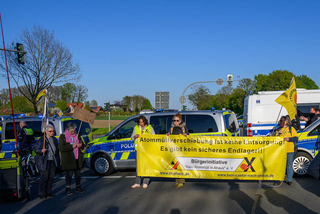 Die Polizei war mit einem Großaufgebot im Einsatz. Insgesamt waren rund 2.150 Beamtinnen und Beamte eingesetzt, um den Transport abzusichern. Nach Angaben der Polizei verlief die nächtliche Fahrt ohne Zwischenfälle. Gefahr habe zu keinem Zeitpunkt bestanden.