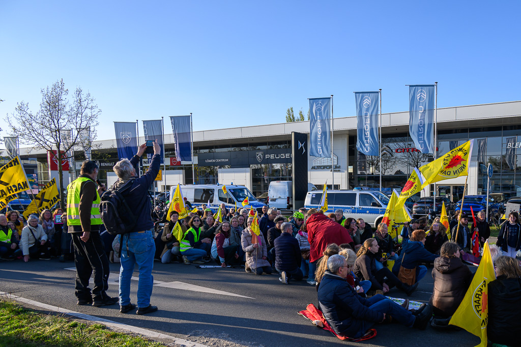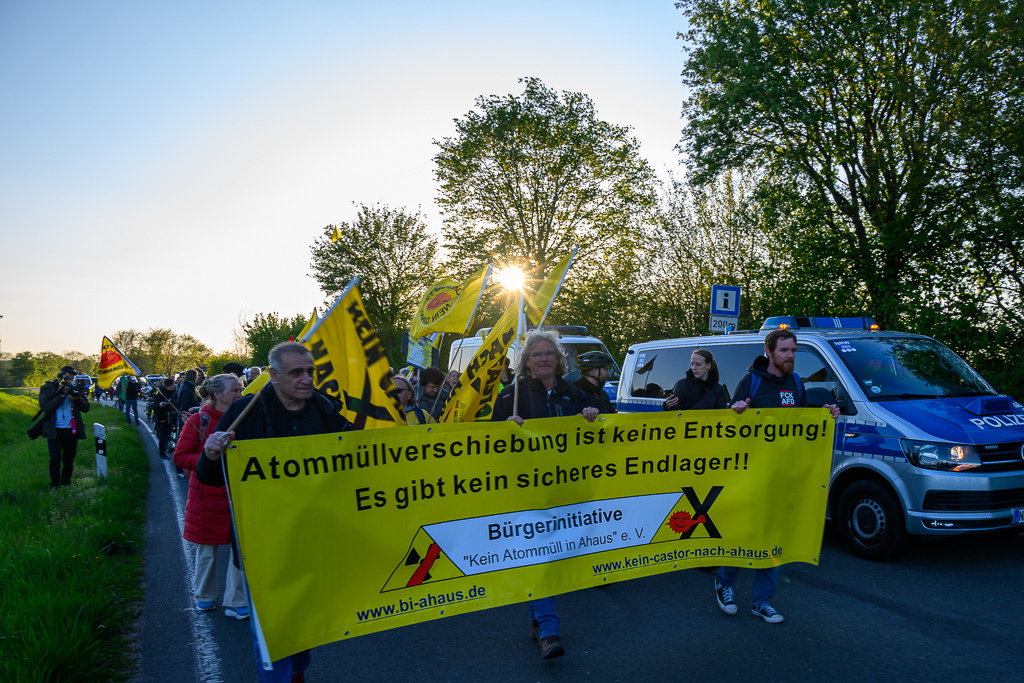 Der Protest begann mit einer Auftaktkundgebung am Rathaus, an der sich nach Angaben der Veranstalter rund 230 Menschen beteiligten. Von dort zog die Demonstration in Richtung Zwischenlager. Etwa 150 Teilnehmer begleiteten den Protestzug bis zum Zielort am Atommülllager. Vor dem Zwischenlager formierte sich eine dauerhafte Kundgebung. Gegen Mitternacht sollen dort noch rund 40 Demonstrierende ausgeharrt haben.