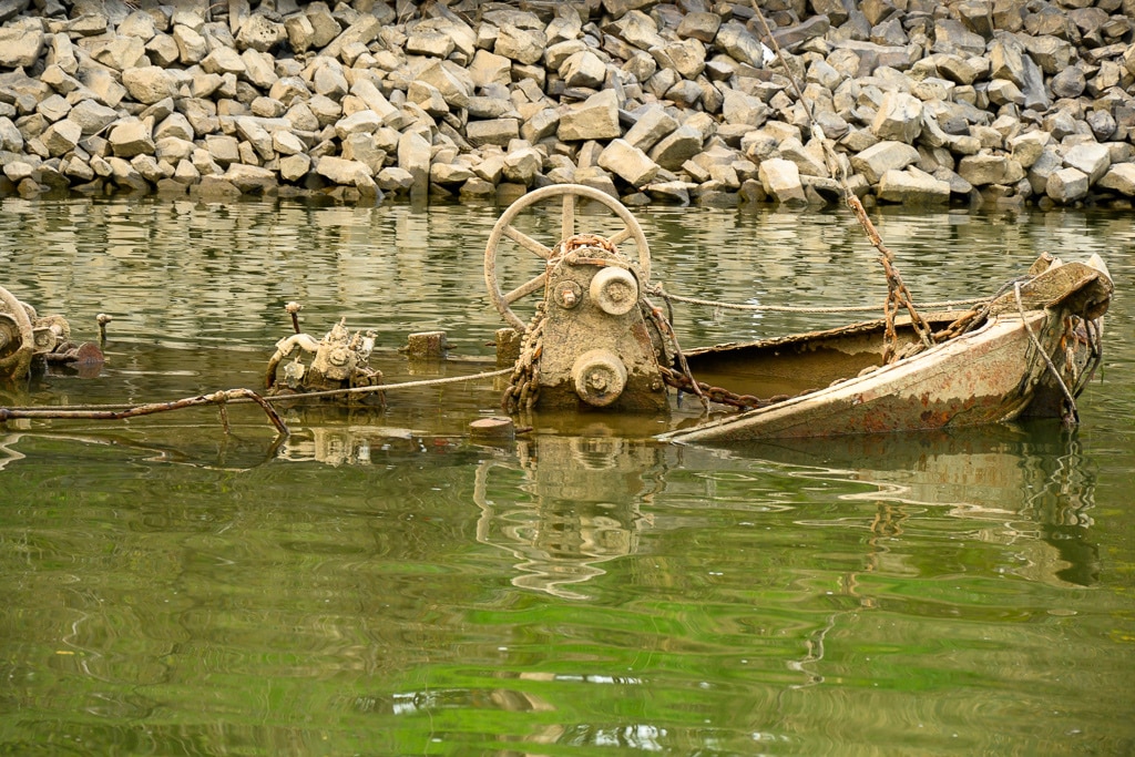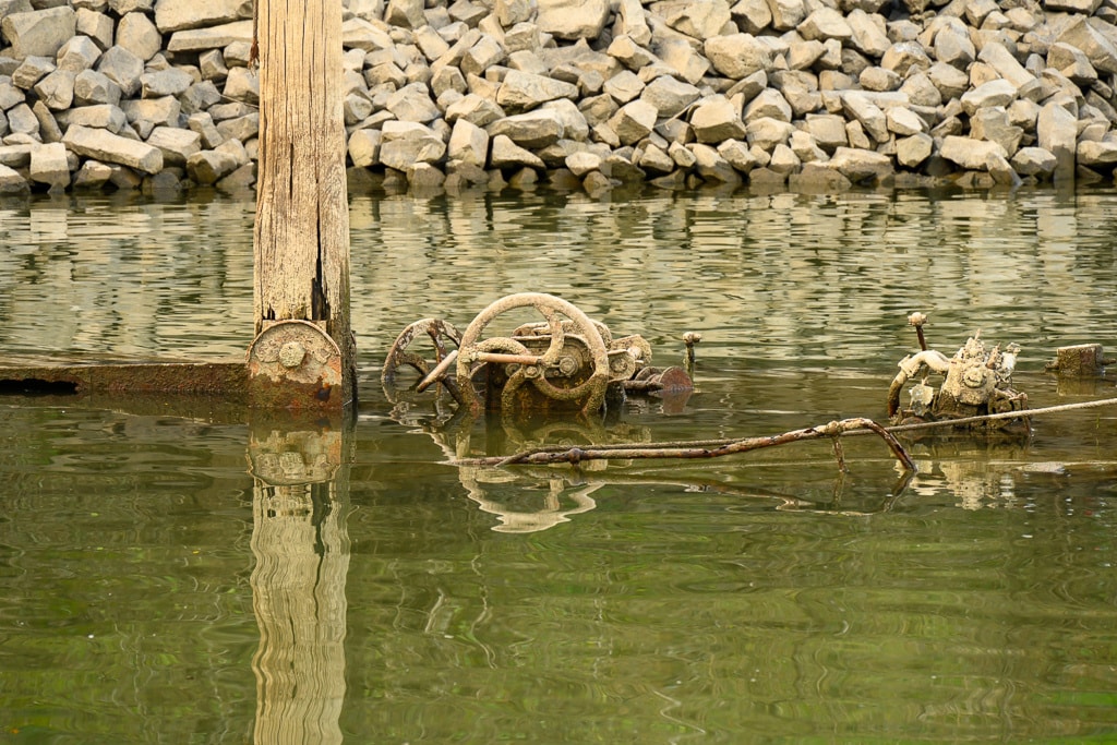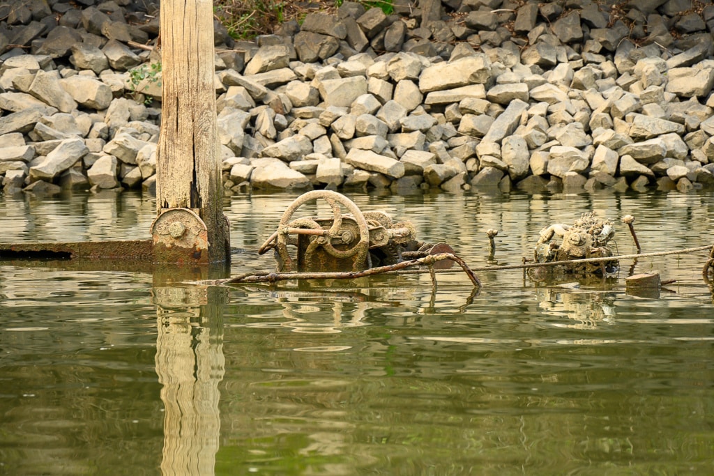 Der Weg zum Lost Place ist nicht „barrierefrei“. Das Wrack ist bis auf den Mast nur bei extremen Niedrigwasser gut sichbar.