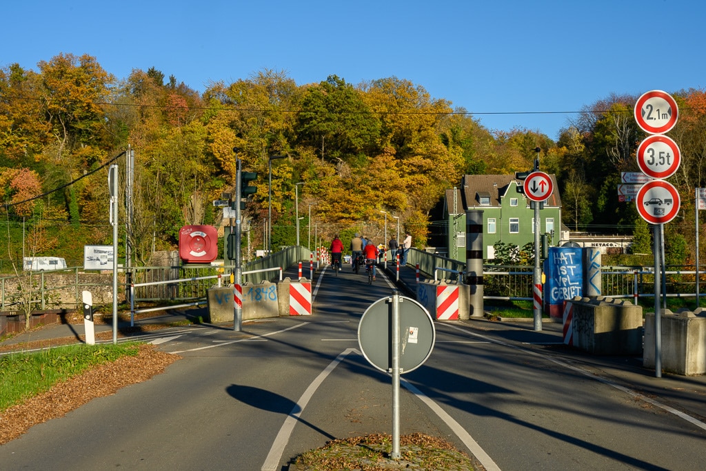 Aufgrund von Überbelastungen der Brücke wurde es ab Oktober 2005 notwendig, für die täglich ca. 3500 passierenden PKWs, eine Geschwindigkeitsbeschränkung von 10 km/h einzuführen. 2011 wurde die Brücke saniert und es wurden bauliche Maßnahmen vorgenommen, die verhindern, dass Fahrzeuge die Brücke passieren, die zu breit oder zu schwer sind. Es wurden über die Zeit zahlreiche Verkehrsschilder, Betonblöcke, Ampelanlagen und auch ein Blitzgerät aufgestellt. Neben Fußgängern und Radfahrern dürfen nur noch PKW ohne Anhänger, die nicht breiter als 2,10m sind, die Brücke benutzen. Fahrzeuge, die trotz roter Ampel auf die Brücke fahren, werden konsequent per Blitzer erfasst.